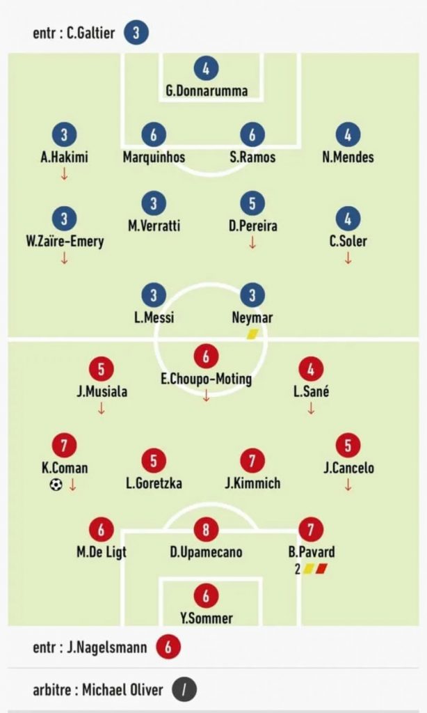 Hablamos de L’Equipe, quienes volvieron a arremeter contra Lionel Messi y Neymar Jr, quienes no tuvieron un buen rendimiento, por lo que fueron calificados con la nota más baja, un 3 sobre 10. No fueron los únicos, ya que Marco Verratti, Achraf Hakimi y el joven Warren Zaire-Emery fueron calificados con la misma nota.