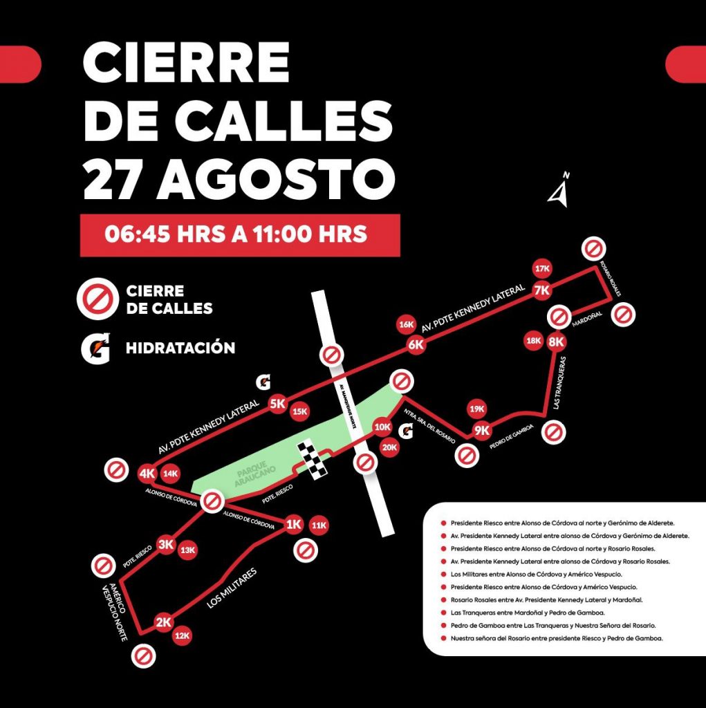 Esta competencia se llevará a cabo el próximo domingo 27 de agosto desde las 6:30 horas y tendrá la partida y la meta en el conocido Parque Araucano, específicamente en Av. Presidente Riesco #5711, entre Av. Alonso de Córdova y Av. Manquehue.