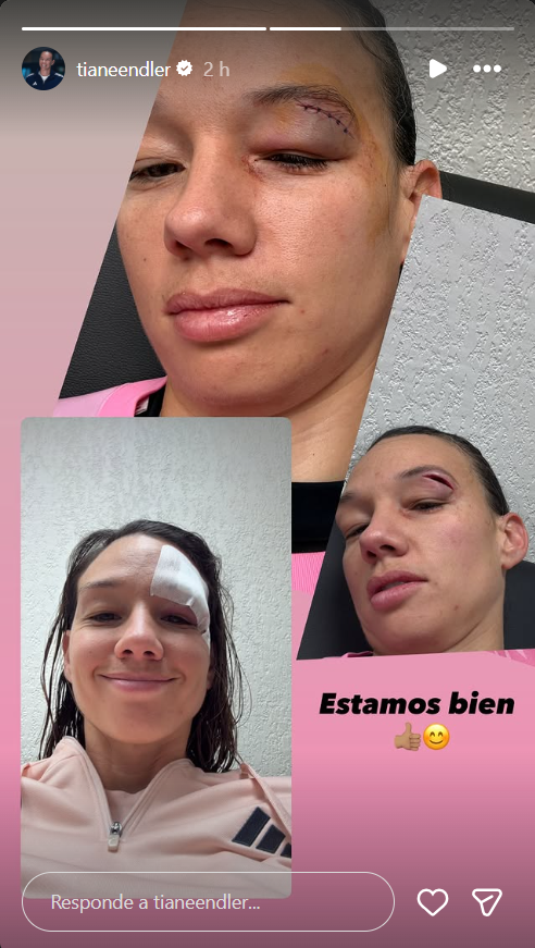 Finalizado el partido, Endler llevó tranquilidad a sus seguidores a través de redes sociales, donde compartió imágenes de la lesión y confirmó que necesitó cinco puntos de sutura para cerrar la herida. Junto a las fotografías escribió un mensaje escueto pero tranquilizador: “Estamos bien”, acompañado de un emoji sonriente y un pulgar arriba.