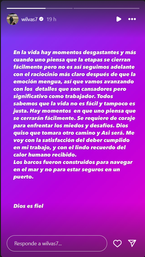 Mira a continuación la historia de Instagram del Wilson Vásquez: