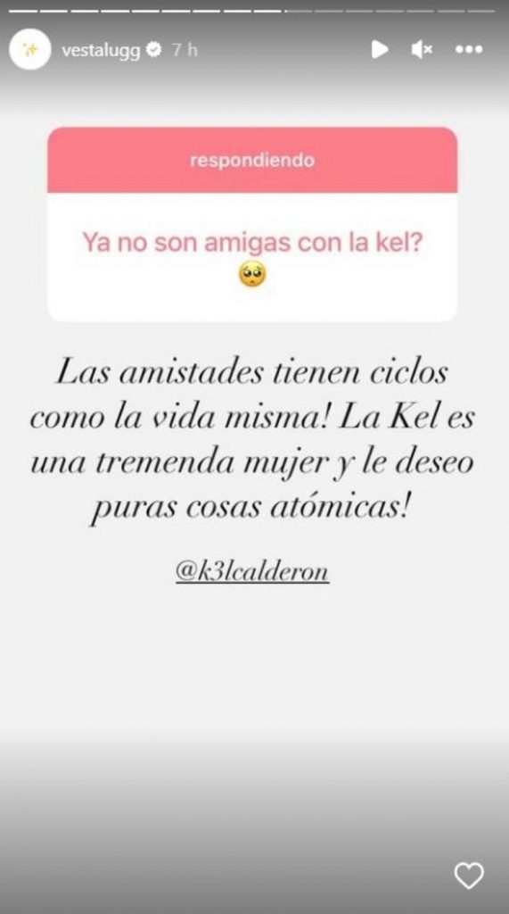 “¿Ya no son amigas con la Kel?“, fue la pregunta que recibió Vesta Lugg en las redes sociales, donde la cantante optó por responder con un reflexivo mensaje.