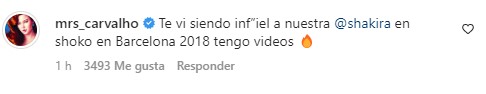 “Te vi siendo infiel a nuestra Shakira en Shôko, en Barcelona 2018. Tengo videos”, mencionó en su cuenta de Instagram.