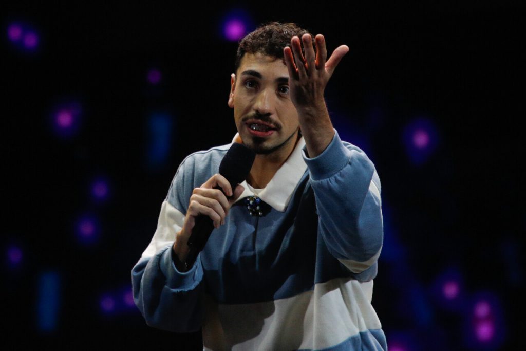 “Les quiero contar que hace una semana me hicieron la llamada más rara del mundo. Una persona de Viña me llama y me dice: ‘Aló, ¿con Diego Urrutia?’, ‘sí, con él’, ‘¿te gustaría participar en el festival latino más importante del mundo ante 15 mil personas, en un escenario que jamás has pisado en tu miserable vida?’, ‘ya’“, recordó el joven, desatando risas entre los espectadores.