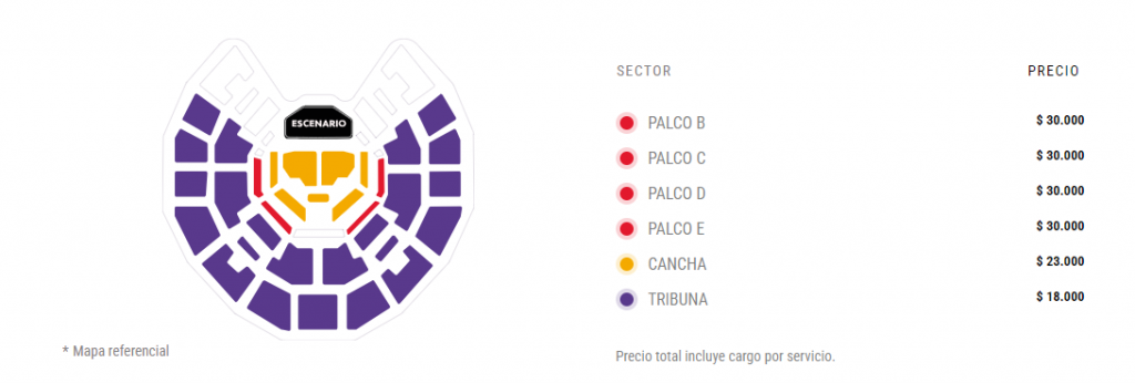 - Palco E: $30.000