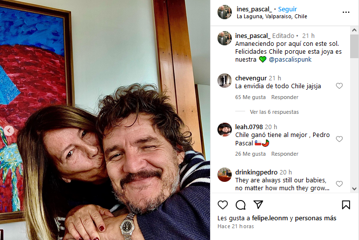 Su tía, Inés Pascal, compartió una fotografía en Instagram junto al actor, donde ella abraza al sobrino mientras el actor guiña un ojo. “Amaneciendo por aquí con este sol. Felicidades Chile porque esta joya es nuestra”, fue el mensaje con el que acompañó el retrato.