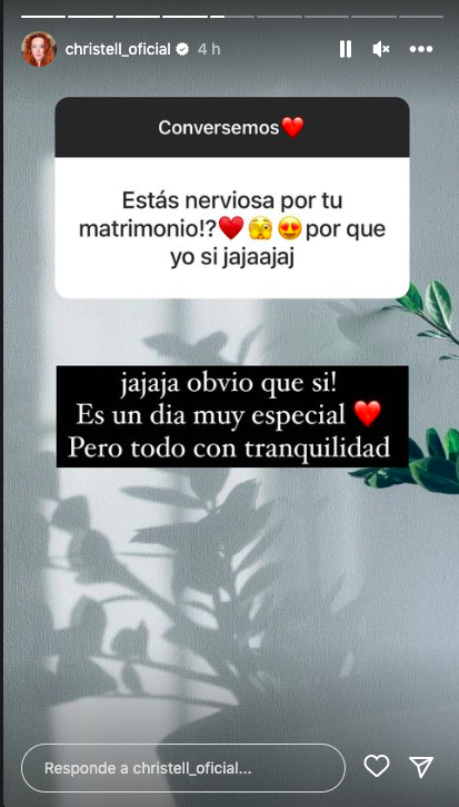 Le consultaron si estaba nerviosa por su matrimonio, y ella contestó “jajaja obvio que si! Es un día muy especial ❤️ Pero con tranquilidad.