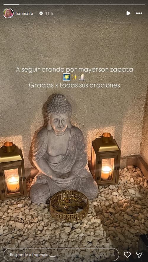 A través de su cuenta de Instagram —donde suma cientos de miles de seguidores— la artista compartió una historia con un mensaje espiritual en el que pidió continuar rezando por la recuperación del joven. En la publicación aparece la imagen de un Buda con velas y ofrendas, acompañada por un breve mensaje dirigido a quienes han seguido el caso.