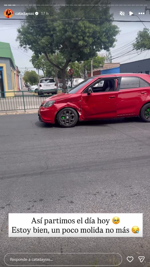 Envió un mensaje de inmediato a sus seguidores para calmar cualquier alarma: “Así partimos el día hoy. Estoy bien, un poco molida, no más”.