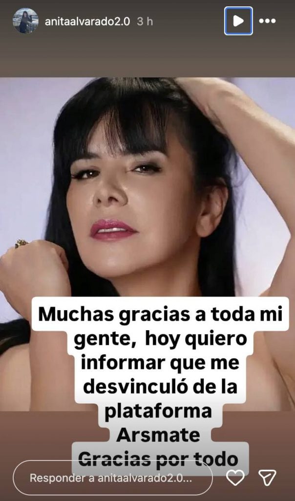 En una historia publicada en su cuenta de Instagram, solo escribió: “Muchas gracias a toda mi gente, hoy quiero que me desvinculo de la plataforma Arsmate. Gracias por todo”.