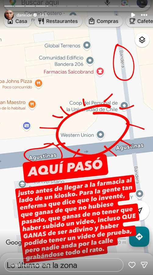 Dani relató que el agresor era un hombre que gritaba frases de carácter religioso, a quien no conocía y que simplemente lo atacó. “Un enfermo que estaba gritando hue… evangélicas me escupió mientras caminaba por la calle en Santiago Centro”, denunció.