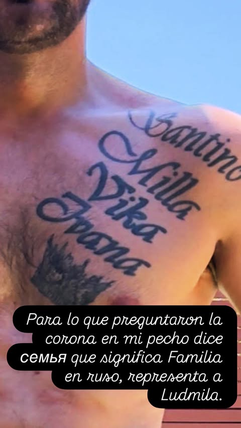 Durante este domingo, Ballero también publicó una fotografía del tatuaje que se realizó en el torso con los nombres de sus hijos, acompañados de una corona y la palabra rusa “семья”, que significa “familia”. Explicó que la corona representa a Ludmila.