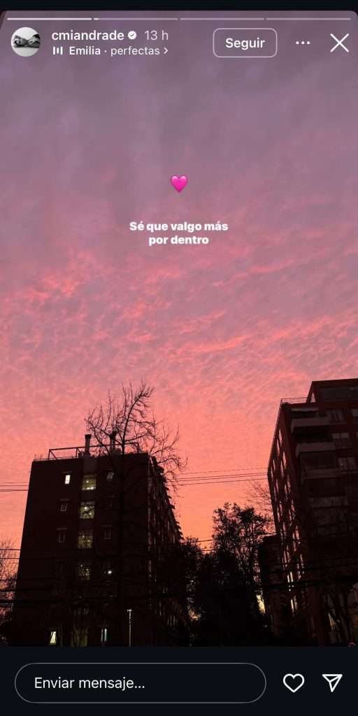 Tras estas declaraciones, Camila Andrade utilizó sus historias de Instagram para compartir enigmáticos fragmentos de la canción “Perfecta”, de Emilia Mernes.