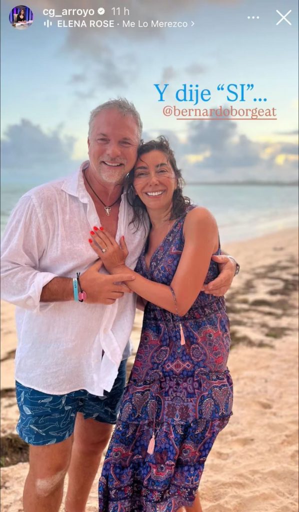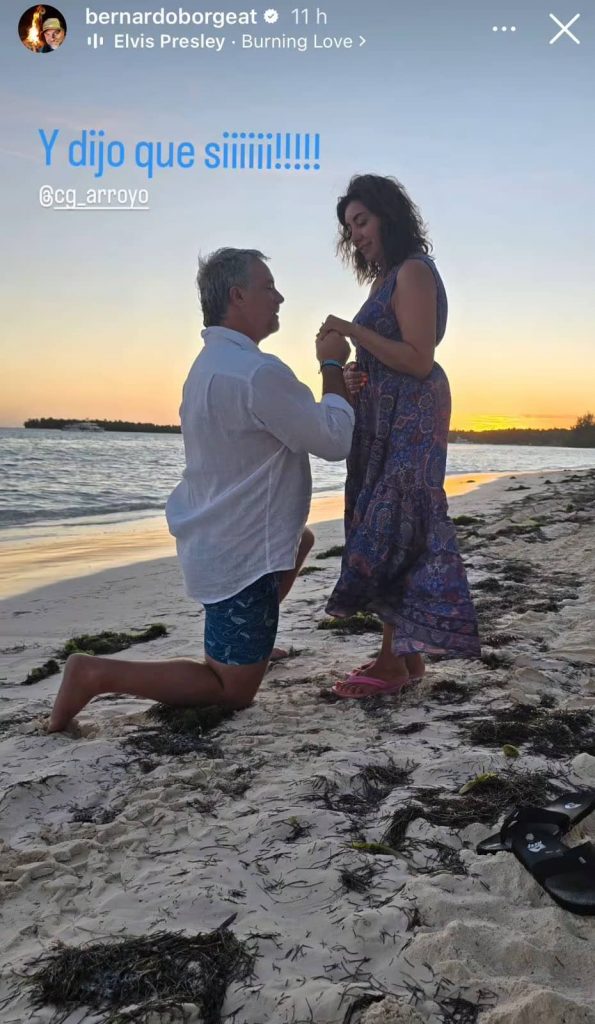 Por su parte, el argentino Bernardo Borgeat también compartió un momento del especial día. En una fotografía, se le ve arrodillado frente a Arroyo, sosteniendo la joya en mano, justo antes de hacer la gran pregunta.