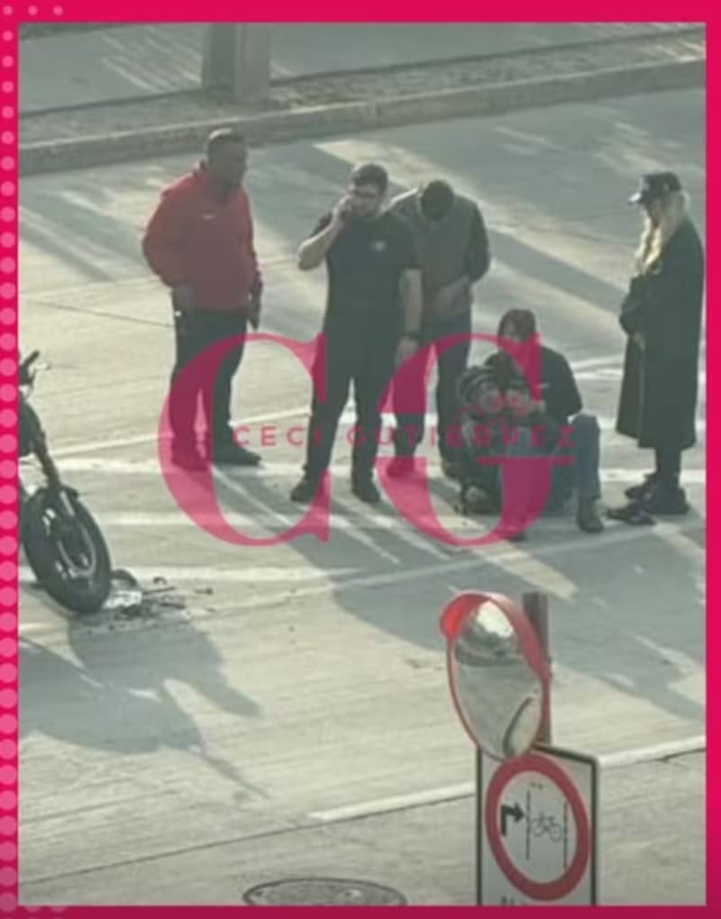 En las imágenes se puede ver a la esposa del exfutbolista Luis “Mago” Jiménez visiblemente preocupada, parada cerca del lugar del impacto y observando la atención al lesionado.