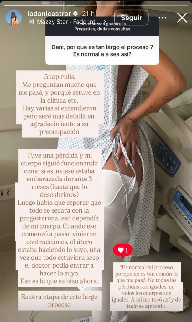 Daniela Castro volvió a utilizar sus redes sociales como espacio de diálogo con sus seguidores para referirse, con total transparencia, al complejo momento de salud que atraviesa tras la pérdida de un embarazo. La influencer decidió abordar el tema luego de recibir múltiples consultas sobre el prolongado proceso médico que ha debido enfrentar.