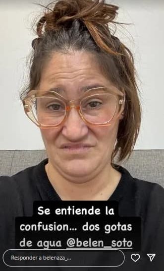 En una segunda imagen, la comediante subió una foto de su rostro al ver la equivocación, acompañada de un irónico mensaje que sacó carcajadas: “Se entiende la confusión… dos gotas de agua“, escribió, etiquetando a la actriz Belén Soto, con quien claramente no guarda mayor parecido físico.