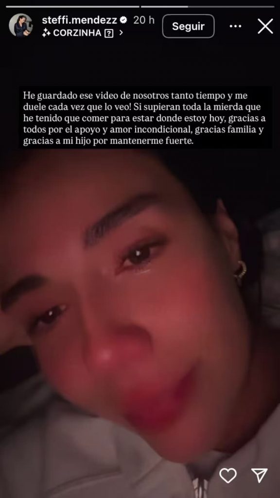 Minutos después, Steffi publicó otro registro, donde aparece visiblemente afectada y con lágrimas en el rostro. Junto a la imagen, escribió un descargo que rápidamente se viralizó: “He guardado ese video de nosotros tanto tiempo y me duele cada vez que lo veo. Si supieran toda la mierda que he tenido que comer para estar donde estoy hoy, gracias a todos por el apoyo y amor incondicional, gracias familia y gracias a mi hijo por mantenerme fuerte”, expresó la hija de DJ Méndez.