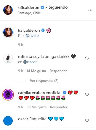 Uno que llamó la atención fue de la ex Miss Chile Camila Recabarren, quien al mismo estilo de Kel, escribió en símbolos: “???????????”.