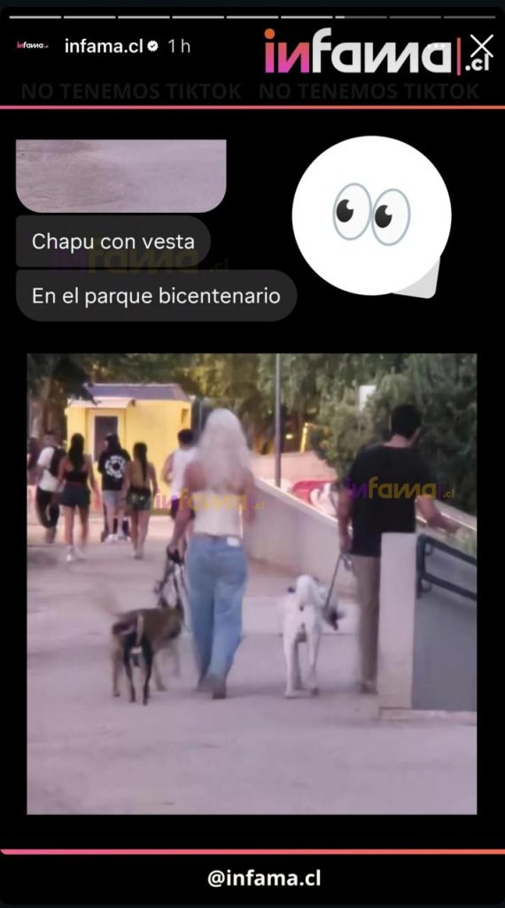La información fue difundida por el portal Infama, que compartió una fotografía en sus redes sociales donde se aprecia a la cantante paseando por el Parque Bicentenario, en la zona oriente de Santiago, junto a Francisco Puelles, popularmente conocido como “Chapu”. Según consignaron, la imagen habría sido enviada por un seguidor que los reconoció durante el recorrido.