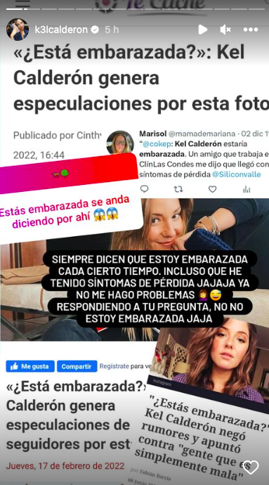 “Estás embarazada, se anda diciendo por ahí”, se lee en el mensaje. Ante esto, “Kel” explicó que “siempre dicen que estoy embarazada, cada cierto tiempo. Incluso que he tenido síntomas de pérdida“.