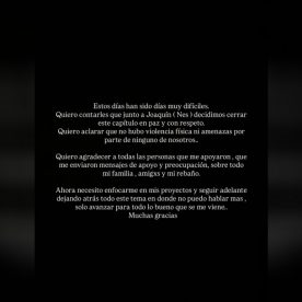 Después de varios días de silencio, Fran Maira compartió un mensaje en sus redes sociales. “Quiero contarles que junto a Joaquín (Nes) decidimos cerrar este capítulo en paz y con respeto”, escribió.