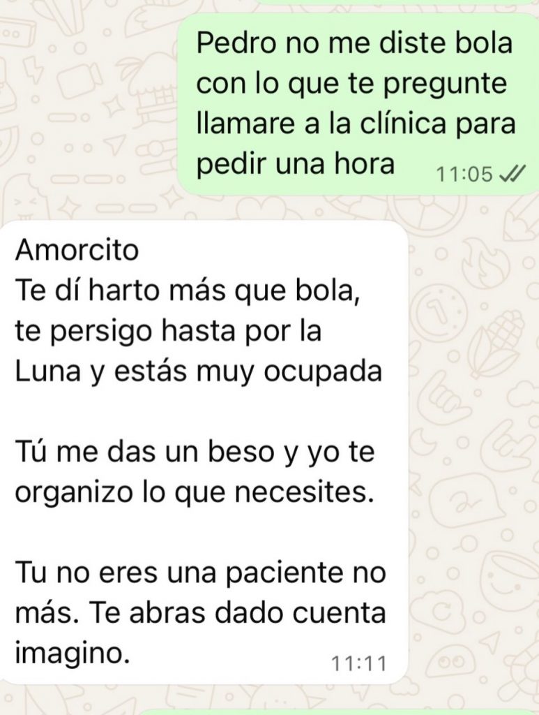 A través de su cuenta de Instagram, la intérprete explicó que durante su tratamiento se generaron situaciones que, a su juicio, no correspondían al ámbito estrictamente clínico. Según relató, estas dinámicas terminaron por situarla en una posición de evidente asimetría frente al profesional, quien tenía autoridad directa sobre su proceso médico.