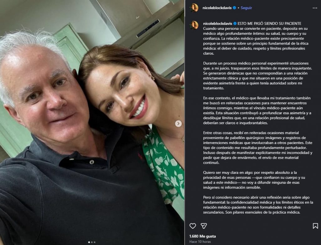 “Quiero ser muy clara en algo: por respeto absoluto a la privacidad de esas personas no voy a difundir ninguna de esas imágenes ni información sensible”, explicó, agregando que estos principios no son detalles secundarios, sino aspectos fundamentales dentro del ejercicio de la medicina.