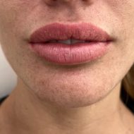 El procedimiento comenzó con la aplicación de hialuronidasa, una enzima que degrada el hialurónico acumulado. Posteriormente, se inyectaron 0,5 ml de un nuevo ácido, enfocado en hidratar y realzar la forma natural de sus labios, sin generar exceso de volumen.