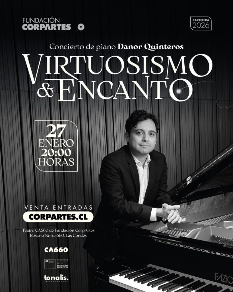 La temporada artística 2026 comienza con excelencia en el Teatro CA660 de Fundación CorpArtes, que este 27 de enero recibirá al destacado pianista chileno Danor Quinteros.