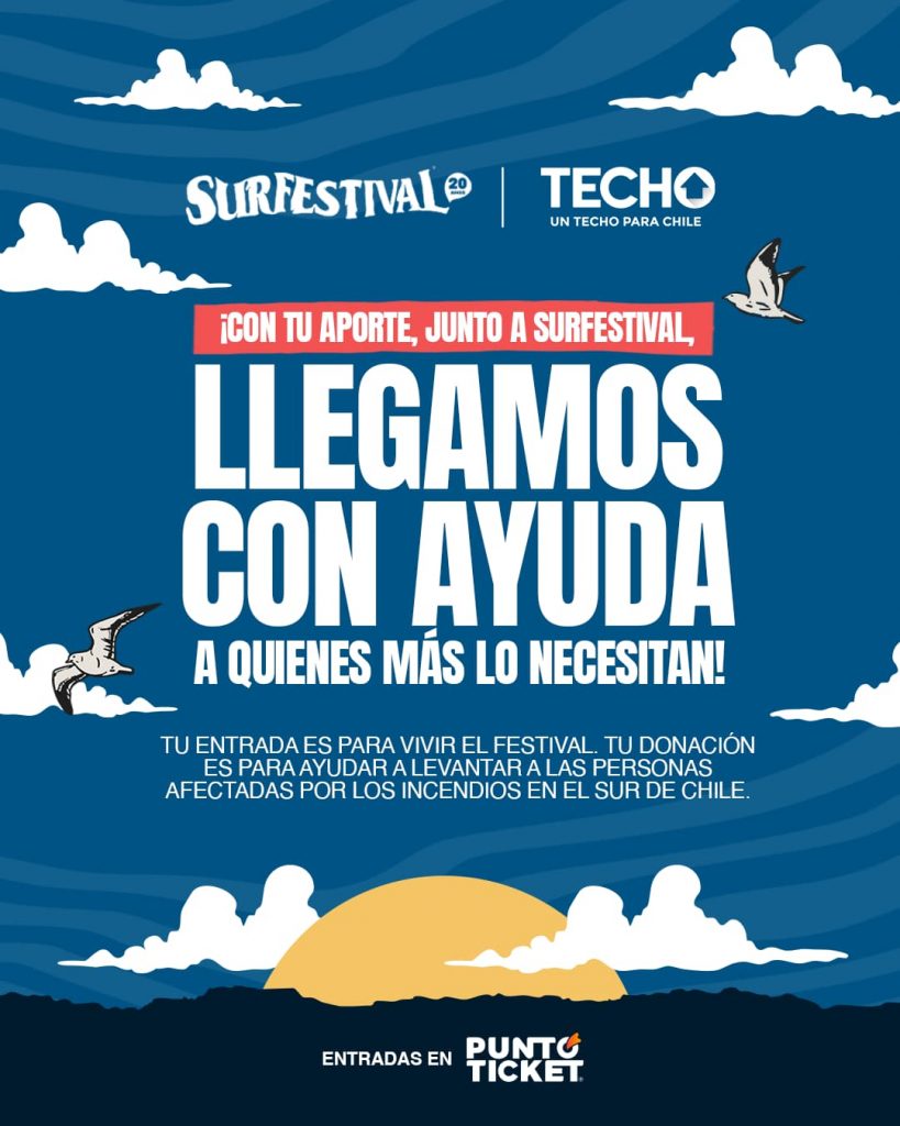 Una iniciativa que une la música con la solidaridad es la que lanzaron Surfestival y Techo para Chile, quienes anunciaron una alianza para ir en ayuda de las familias afectadas por los incendios forestales que han golpeado con fuerza a las regiones del Biobío y Ñuble.