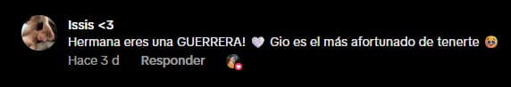 “¡Hermana, eres una GUERRERA! Gio es el más afortunado de tenerte”, escribió Issis, provocando reacciones entre los seguidores de ambas.