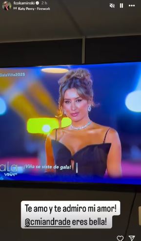 Pese a la expectativa de que asistiera junto a su pareja, Francisco Kaminski, la modelo llegó sola a la alfombra roja. La ausencia del locutor radial no tardó en ser comentada, aunque él manifestó su apoyo a través de Instagram con un mensaje en sus historias: “¡Te amo y te admiro mi amor, eres bella!”.