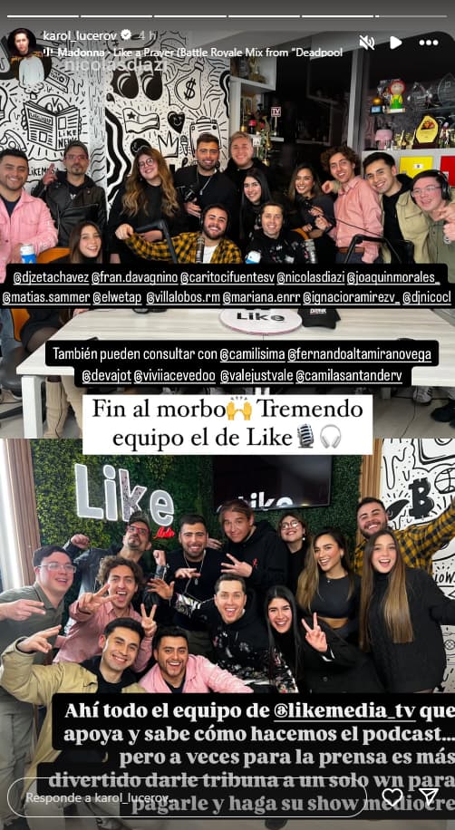 Para contrarrestar las acusaciones, Karol Lucero subió una foto junto a su equipo de trabajo en Like Media. “Fin del morbo, tremendo equipo el de Like”, escribió, desmintiendo cualquier irregularidad en su empresa.