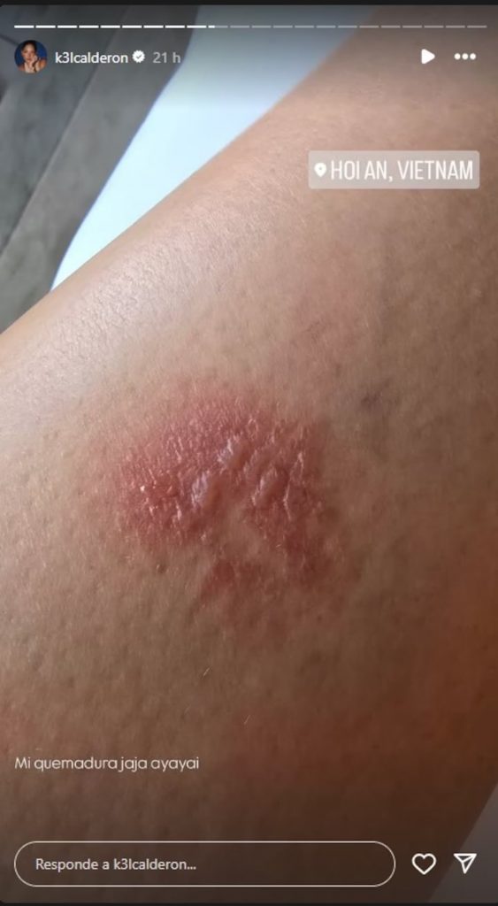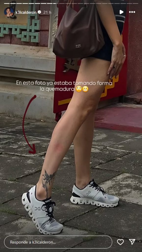 A través de sus historias en Instagram, Kel relató que sufrió una dolorosa quemadura en la pierna derecha mientras caminaba por una zona urbana.