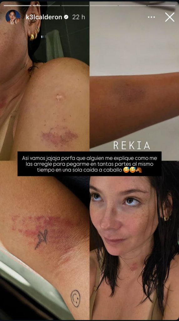 Kel Calderón vivió un complejo momento tras sufrir una fuerte caída mientras practicaba equitación, experiencia que decidió compartir con sus seguidores a través de redes sociales. La influencer mostró las consecuencias físicas del accidente, evidenciando los moretones que quedaron en distintas partes de su cuerpo.