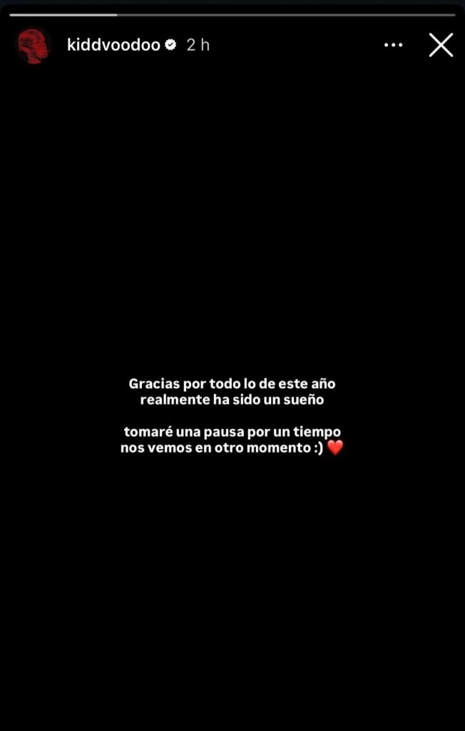 Cabe recordar que, en esa misma conversación, realizada hace solo algunos días, Kidd Voodoo adelantó que sus planes para 2026 incluían seguir lanzando música y mantenerse activo en el mundo del espectáculo. Sin embargo, el reciente mensaje en redes sociales sugiere que el artista optó por detenerse momentáneamente antes de continuar con su carrera.