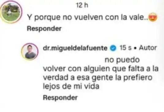 Sin embargo, en el perfil del médico, una usuaria hizo la pregunta que muchos se hacían: “¿Por qué no vuelven con la Vale?”. Frente a esta consulta, Miguel de la Fuente no optó por la diplomacia.