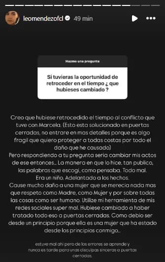 Leo Méndez Jr. sorprendió al realizar un mea culpa público por el conflicto que vivió con Marcela Duque, expareja de su padre, DJ Méndez.