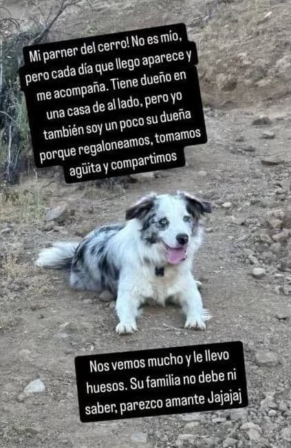 “Mi partner del cerro. No es mío, pero cada día que llego aparece y me acompaña”, comentó junto a una imagen que rápidamente se llenó de reacciones y elogios.