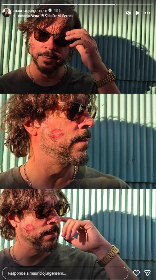 El periodista, por su parte, publicó tres imágenes en sus Stories en las que aparece con la marca de un beso en su mejilla. De fondo, puso la canción “El sitio de mi recreo” de Antonio Vega, un tema romántico por excelencia.