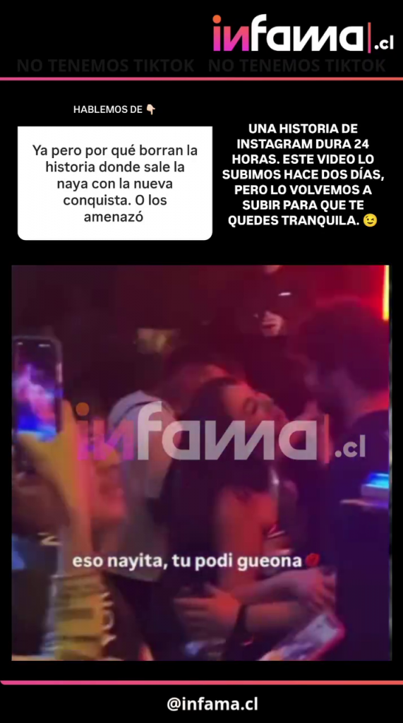 “Gente, me llegó información del nuevo amor de Naya Fácil, con quien se le vio muy coqueta anoche. Incluso anda un video en las redes”, comentó el influencer.
