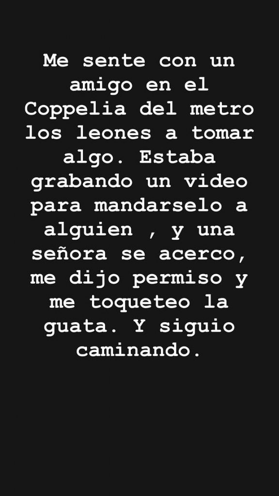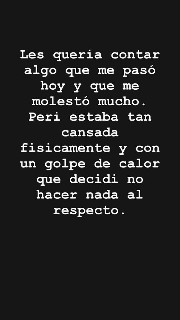 La comediante también explicó por qué no confrontó a la mujer en ese instante: “No dejé la cagada porque era una señora mayor, que andaba con un señor aún mayor que ella. Pero estaba tan cansada físicamente y con un golpe de calor, que decidí no hacer nada”.