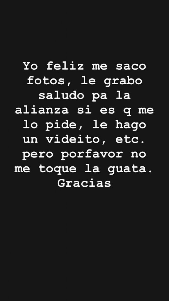 Belén aprovechó el espacio para dejar claro que no tiene problemas con interactuar con sus seguidores, siempre que respeten los límites: “Yo feliz me saco fotos, le grabo un saludo o un videíto. Pero, por favor, no me toque la guata. Gracias“.