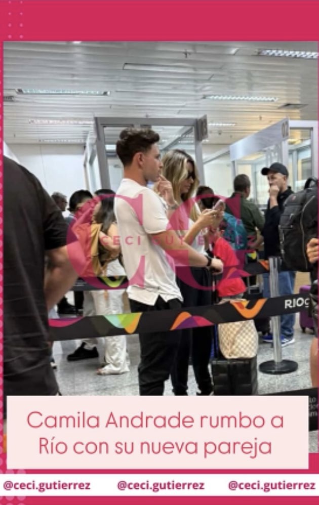 Una imagen compartida por la periodista Cecilia Gutiérrez encendió las redes y llamó la atención de los seguidores de Camila Andrade. En la fotografía se ve a la modelo junto a su nueva pareja, Jorge Yunge, haciendo fila en el Aeropuerto Arturo Merino Benítez antes de abordar un vuelo rumbo a Brasil.