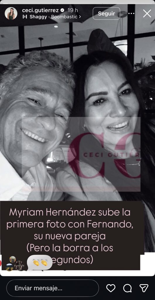 Una publicación fugaz volvió a poner a Myriam Hernández en el centro de la conversación. La cantante chilena subió a sus historias de Instagram una fotografía junto a su nueva pareja, Fernando Cordero Sepúlveda, pero la eliminó apenas segundos después.