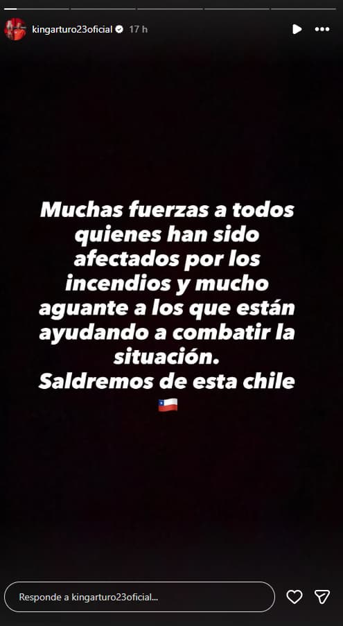 A través de sus redes sociales, el futbolista chileno envió un mensaje de apoyo a las familias afectadas, así como también a quienes combaten activamente los focos de incendio.