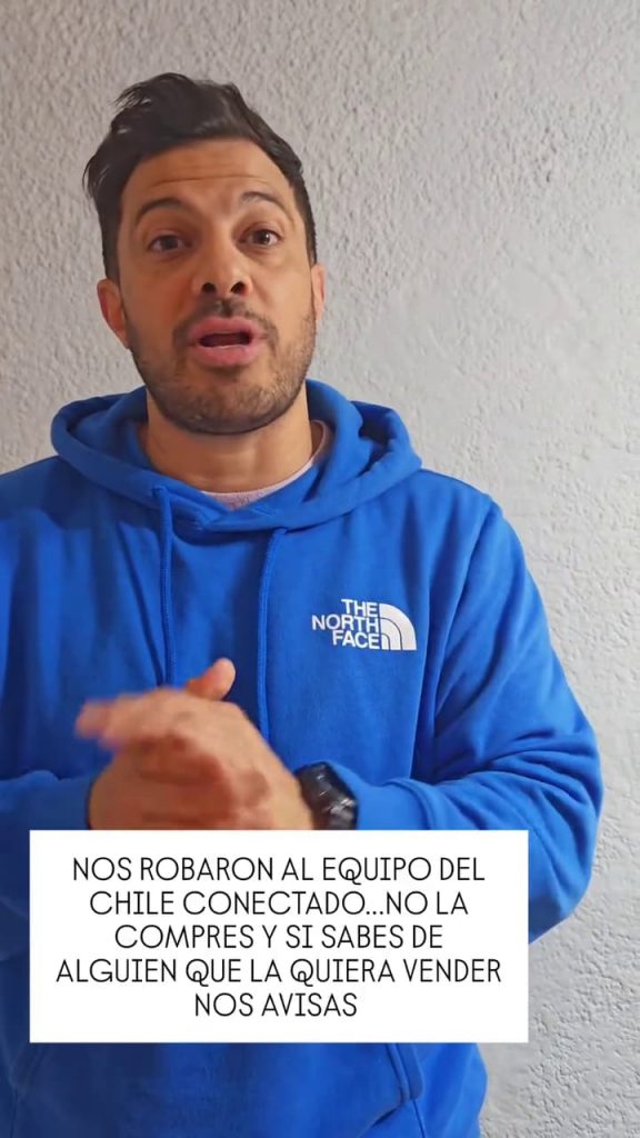 “¡No la compres! Si sabes de alguien que la está vendiendo, danos información por reserva para nosotros hacérsela llegar a Carabineros y poder recuperar el preciado equipo que ocupamos en Chile Conectado. ¡Gracias!”, escribió el periodista.