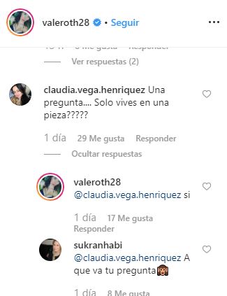 Su comentario fue respondido por Valentina -que le dijo un escueto “sí”- y por varios seguidores que defendieron la actual vida de la bailarina.