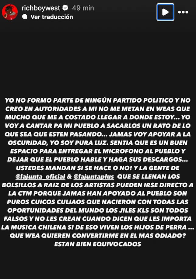 Polimá Westcoast, uno de los artistas más influyentes de la música urbana chilena, no se guardó nada en sus redes sociales.