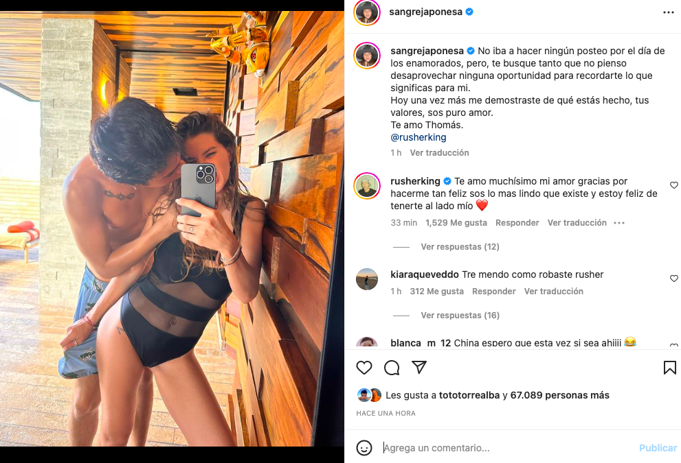 En tanto, “Rusherking” le respondió de la siguiente manera: “Te amo muchísimo mi amor, gracias por hacerme tan feliz, sos lo más lindo que existe y estoy feliz de tenerte al lado mío”.